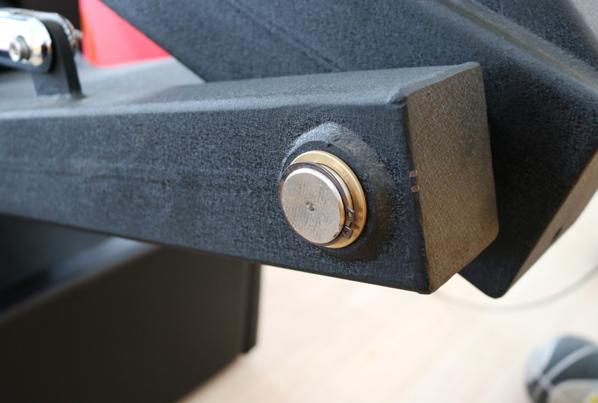 篮架关节活动部位,采用304不锈钢轴与黄铜材质间隔套连接,起到耐磨、配合精密、防锈蚀等作用。