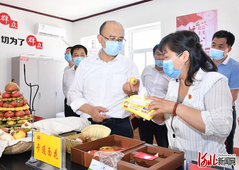 6月14日,省长许勤到沧州市调研检查。这是许勤来到海兴县苏基镇张常丰村,现场观看村民网上直播带货。 河北日报日报 孟宇光摄