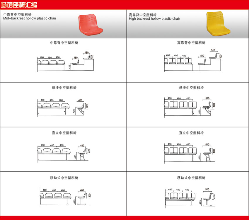 直立式中空塑料翻板椅